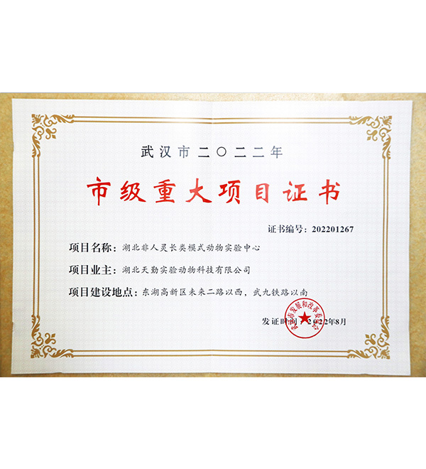市級(jí)重大項(xiàng)目證書